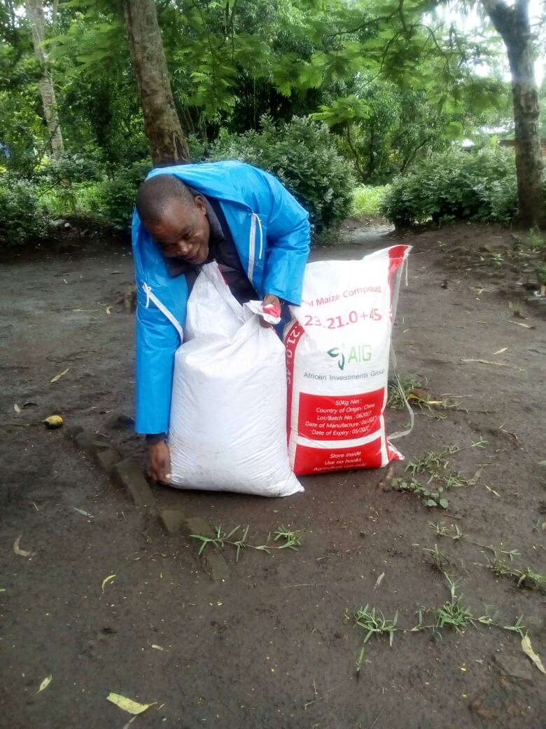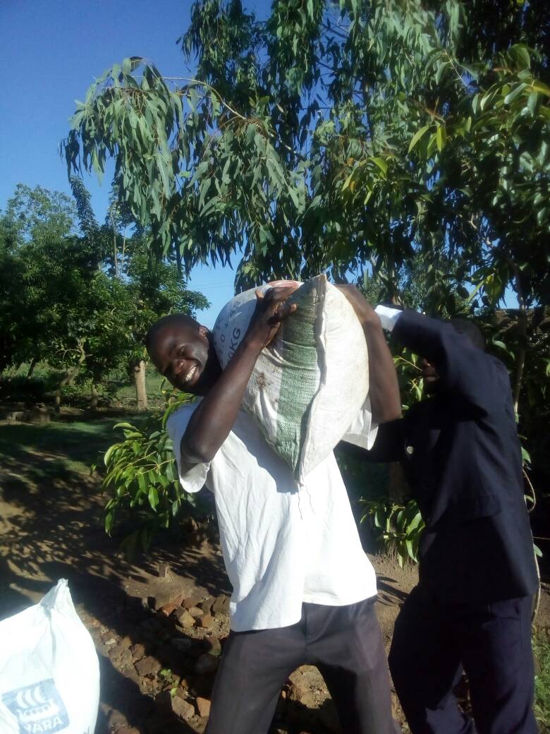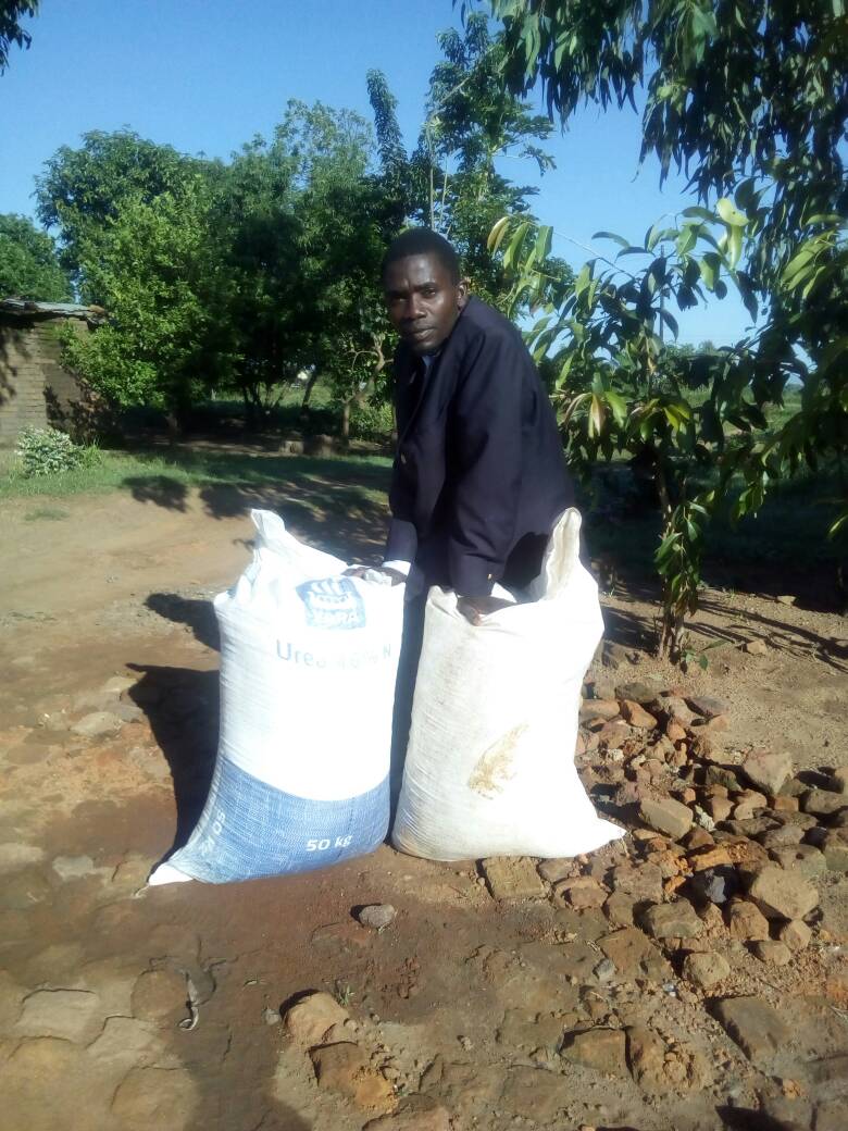The pictures show some pastors with their bags of fertilizers.