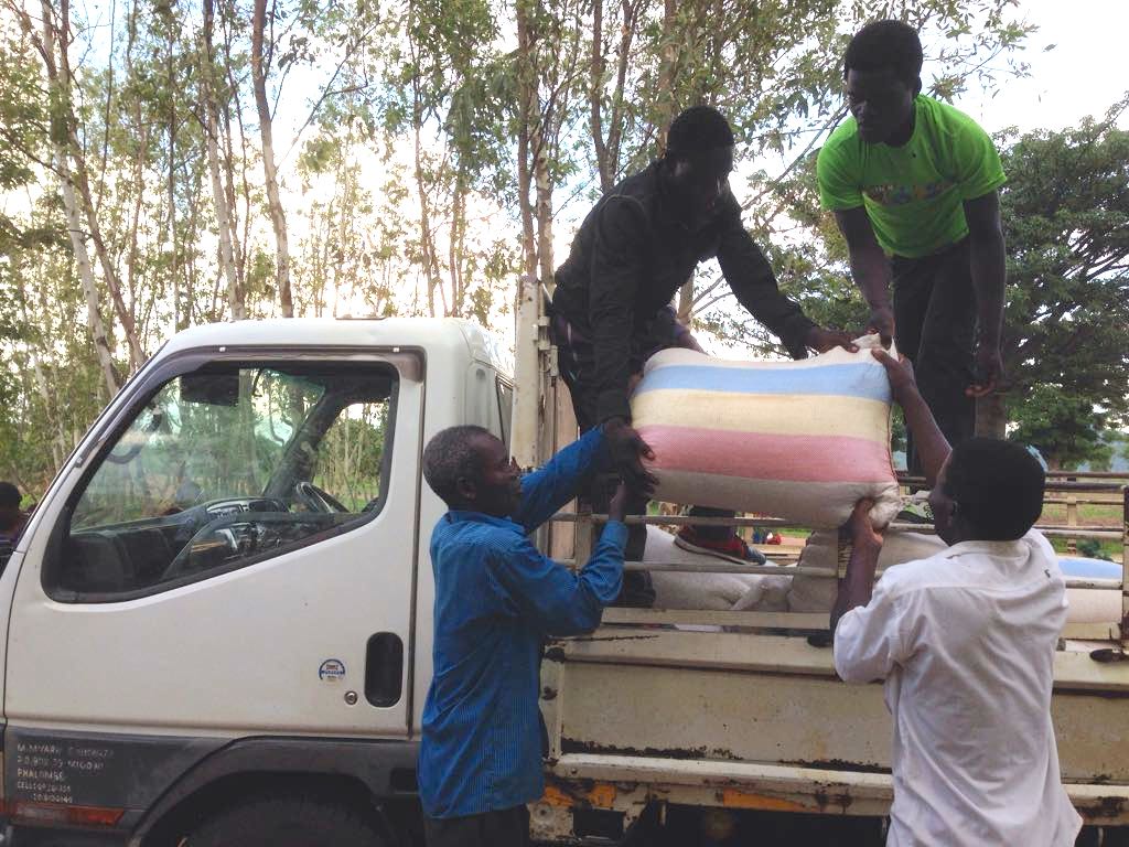 - Relief Team loading a truck with 50kg bags of maize ready for distribution in Phalombe and Mulanje Districts.